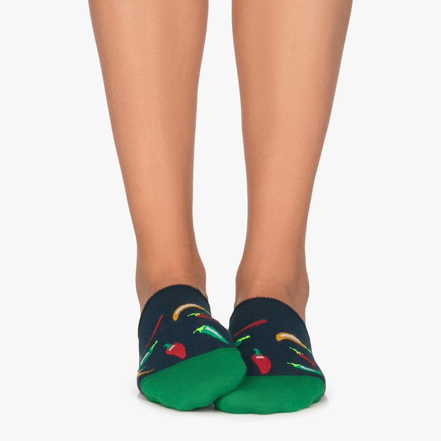 Go for vegan with these funky chili socks. These colorful no-show socks are a spicy choice and the perfect companion wherever you go. Chilies will add a burst of color and freshness to your outfits and are ideal for pairing with your favorite shoes.